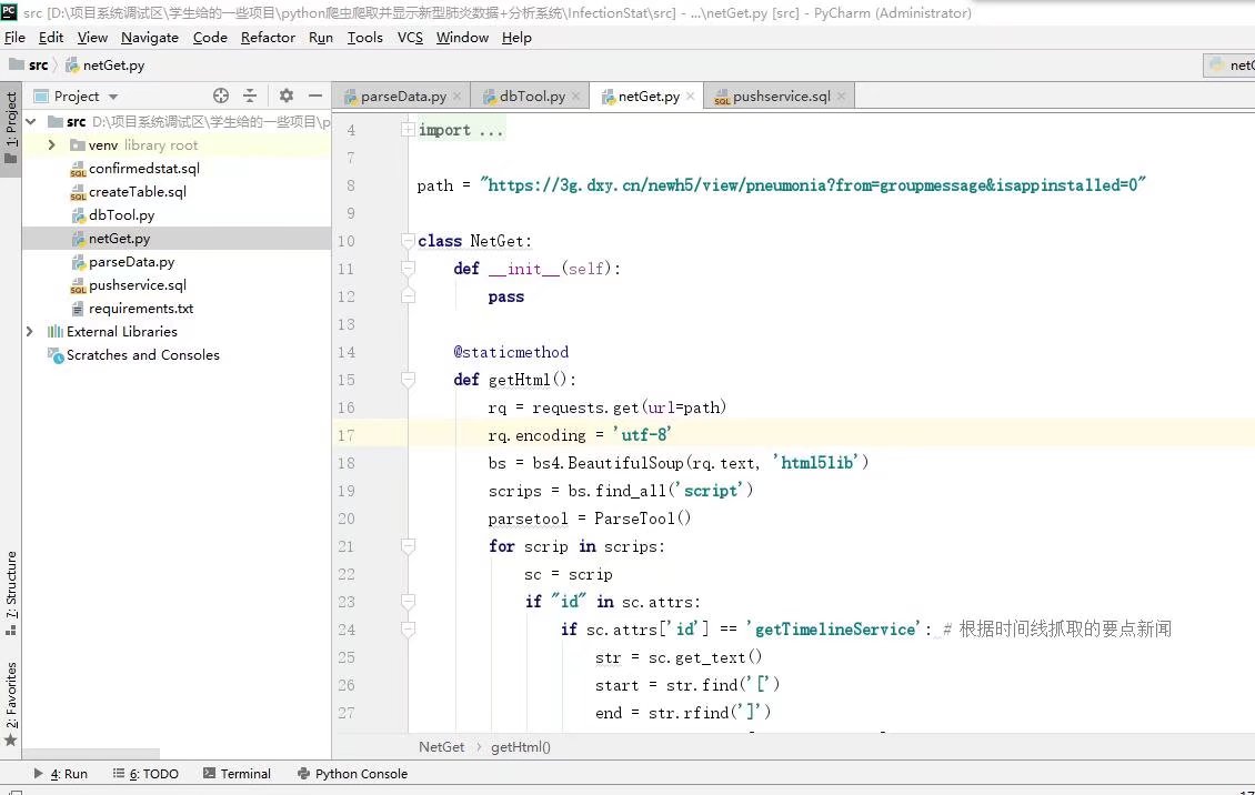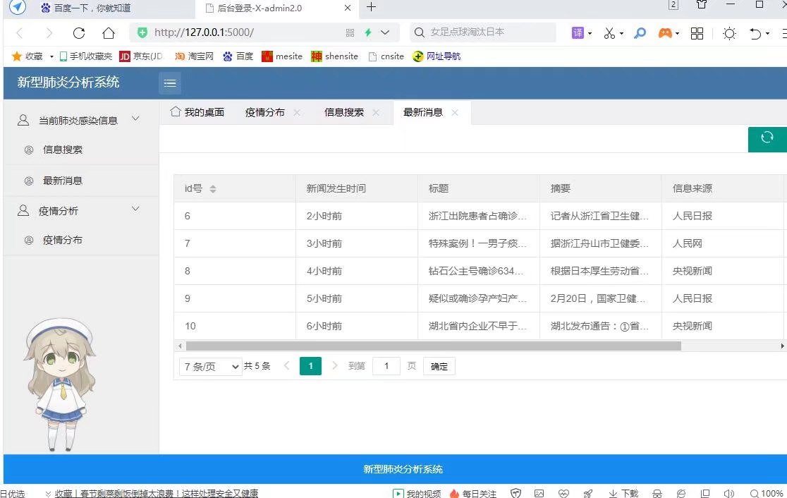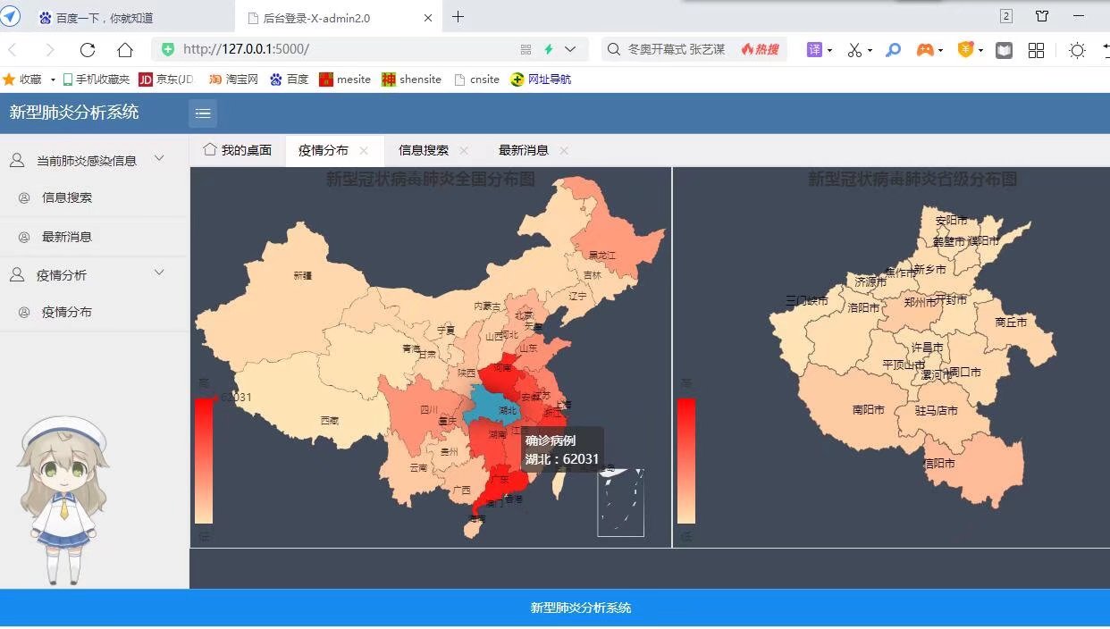 项目功能:利用python将全国各地感染新型肺炎信息爬取下来,存储在mysql数据库,并用flask框架将数据展示在web上,并绘制出疫情地图。