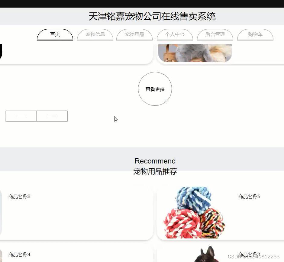 用户根据账号登陆进入宠物公司在线售卖系统,系统根据用户的角色展示相应的功能权限。用户进入系统前台后,可以查看宠物信息等,并查看详情,还能进行在线购买宠物用品等。用户点击后台管理,可以修改个人信息和密码,售后服务、售后处理等功能。