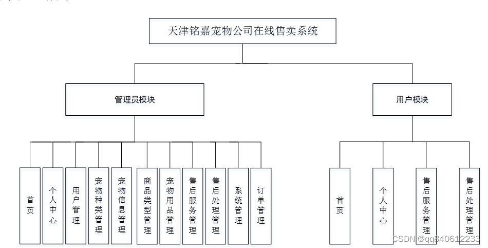 根据一般宠物公司在线售卖系统的功能需求分析,本系统的功能模块如下: