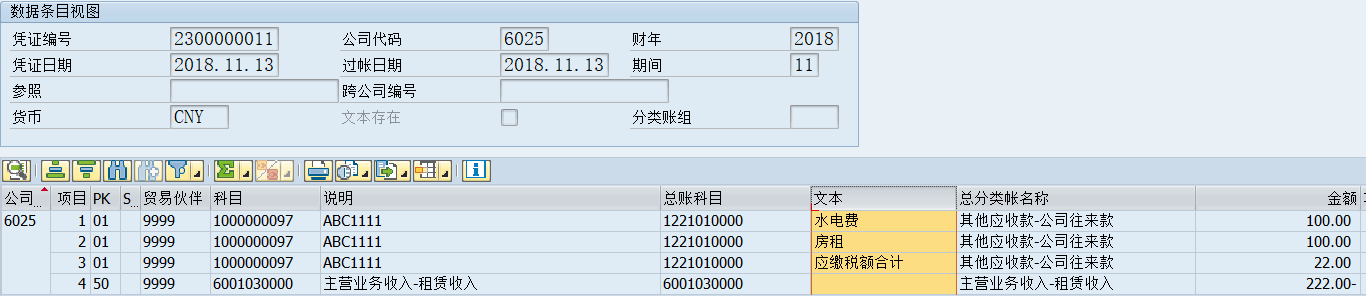 甲方是一家从事房屋租赁的公司,它的主营业务就是从各大租户手里收租子。月底了,小明发了工资美滋滋,钱到手没多久房东就催租子了,房租每月100,水电100, 税费22,合计222.小明如约在手机APP上向房东支付了当月的房租,这边钱到账后,甲方会计收到银行的转账通知,这个时候需要录入一笔凭证 。