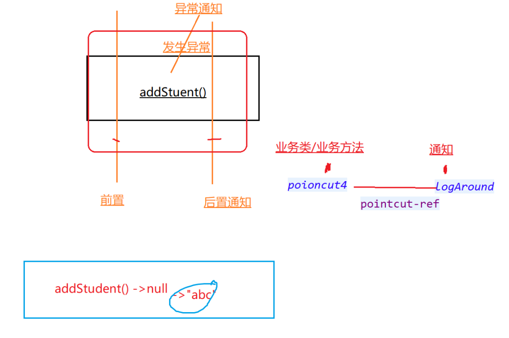 定义切入点(一端)、定义通知类(另一端),通过pointcut-ref将两端连接起来