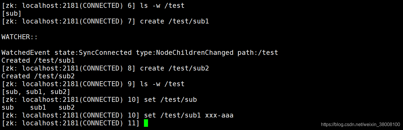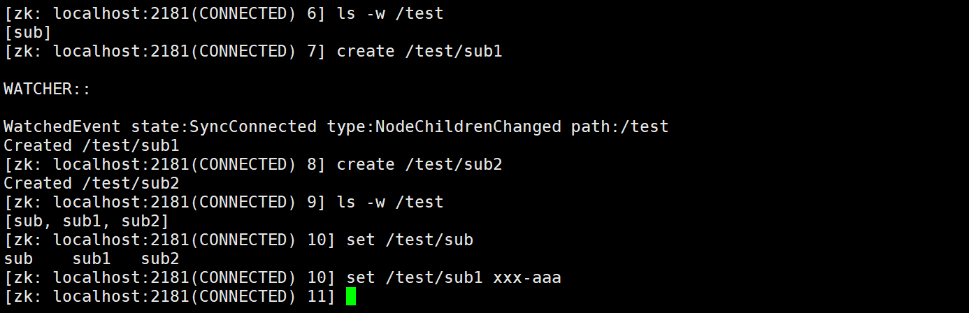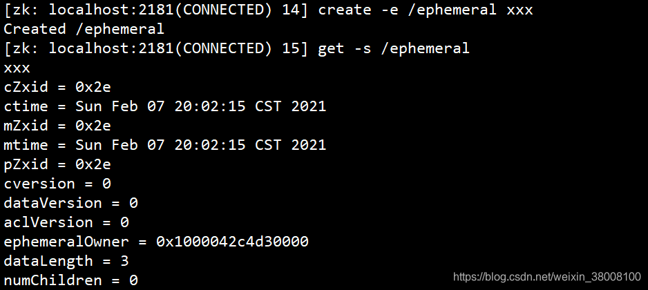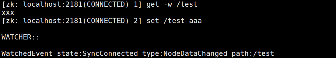 [zk: localhost:2181(CONNECTED) 5] get -s /test