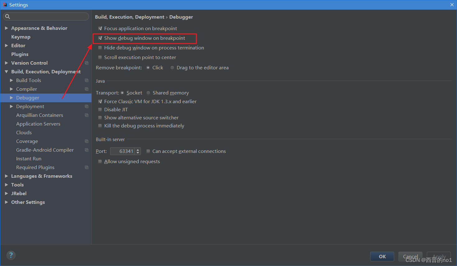 [图1.2]:在设置里勾选Show debug window on breakpoint,则请求进入到断点后自动激活Debug窗口