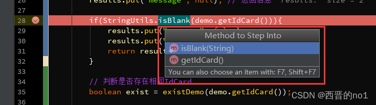 想想,一行代码里有好几个方法,怎么只选择某一个方法进入。之前提到过使用Step Into (Alt + F7) 或者 Force Step Into (Alt + Shift + F7)进入到方法内部,但这两个操作会根据方法调用顺序依次进入,这比较麻烦。