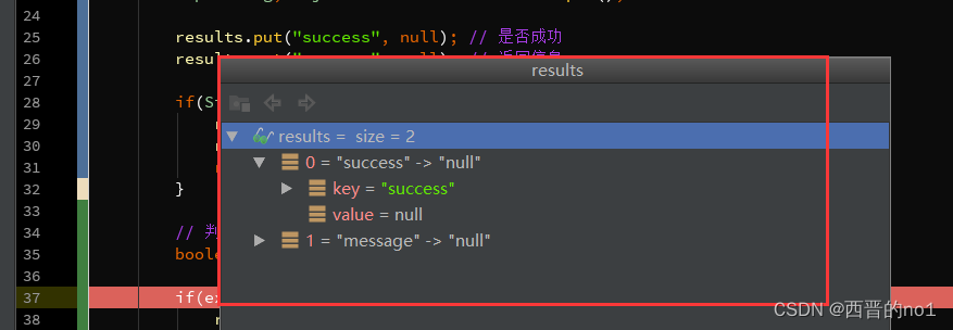 点击Force Return,弹出Return Value的窗口,我这个方法的返回类型为Map,所以,我这里直接返回 results,来强制返回,从而不再进行后续的流程。或者你可以new HashMap<>()。