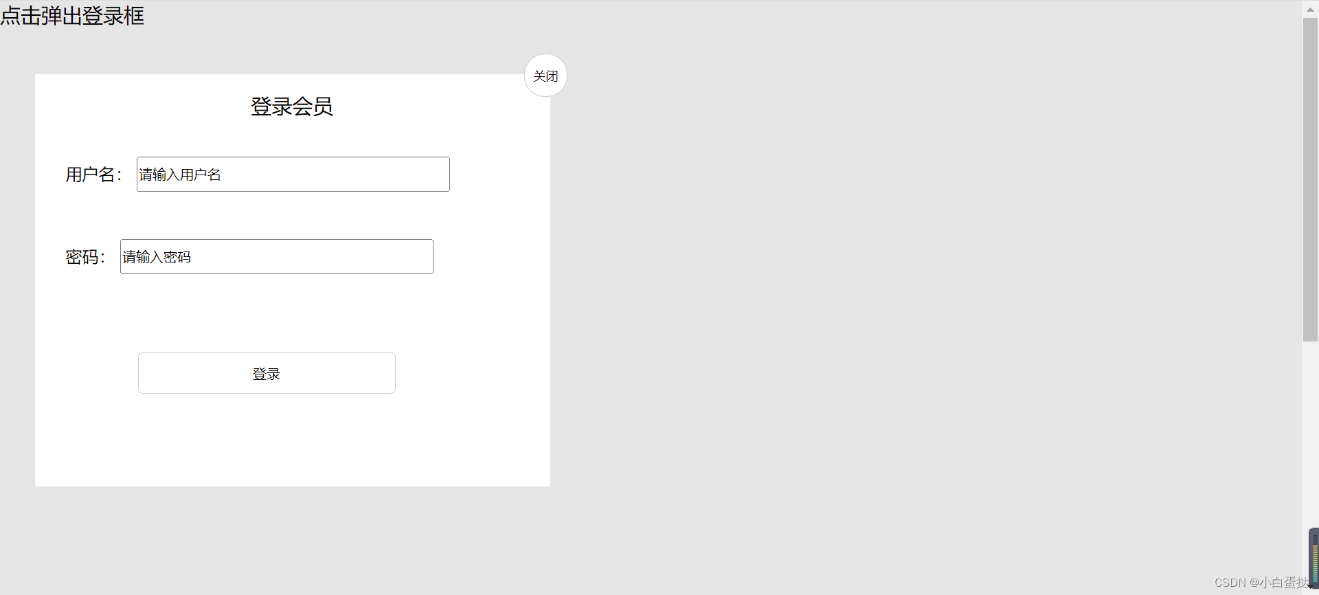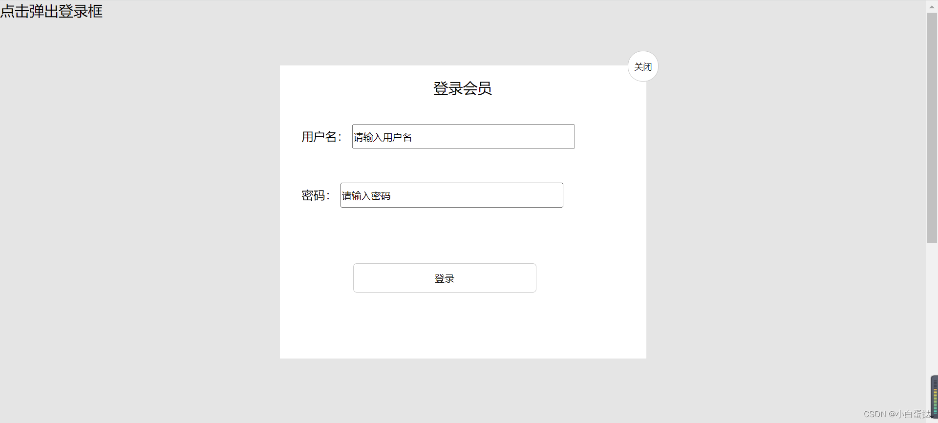 })2.鼠标按下登录会员区域可以拖动模态框在页面移动。