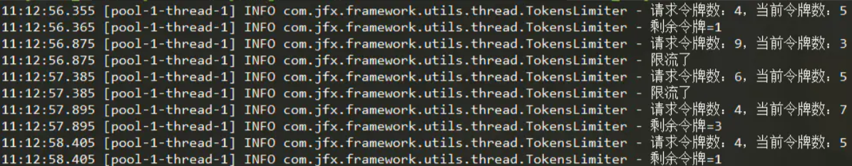 log.info("请求令牌数:" + permits + ",当前令牌数:" + tokens);