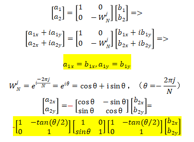 (1)图2(a)形式的蝶形变换矩阵都具有如下实数形式: