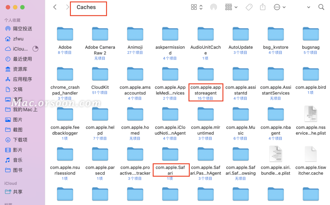在Caches文件夹下,基本上也都是可以删除的,但是其下属文件夹的命名可能并不是很友好,在不确定的情况下可以去搜索其文件名确定是哪个应用程序。