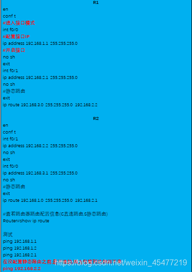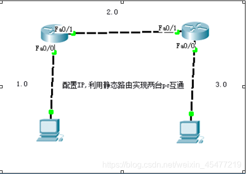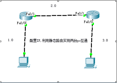 非直连网段: 需要手动配置静态路由实现,比如1.0网段到2.0网段,需要配置1.0网段的路由下一跳地址,这样下一个路由收到后,才能够继续向后转发