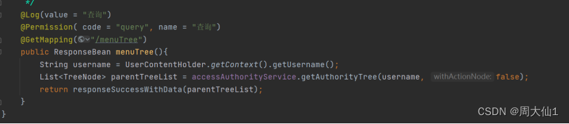 当访问menuTree这个接口时,日志会被记录,这个方法的功能是查询,所以我@Log里面的value也写的的查询,也可以写新增,修改,看情况