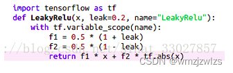 leakyRelu的简单实现可以这么写: tf.maximum(leak * x, x),