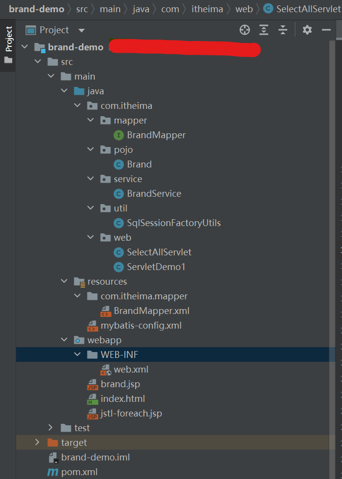 错误原因:访问网址http://localhost:8080/brand-demo/selectAllServlet