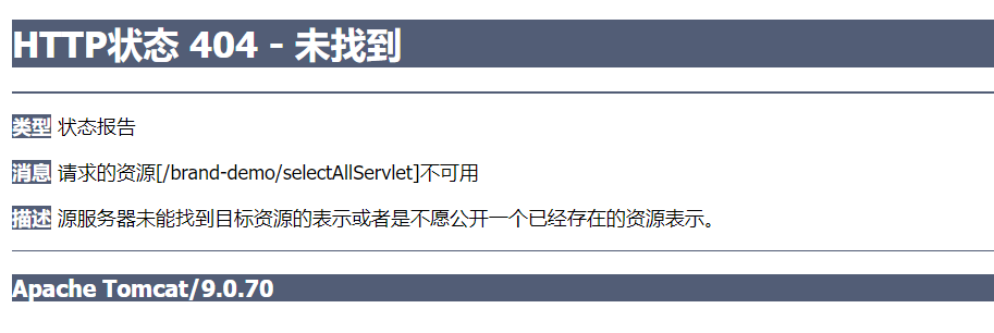 正确网址:http://localhost:8080/brand_demo_war_exploded/selectAllServlet
