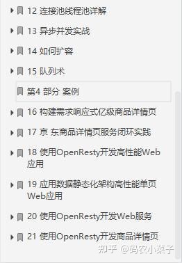 第三部分:高并发,介绍开发高并发系统的一些原则,如缓存、池化、异步化、扩容、队列等,并配合大量案例帮助读者更好地掌握和运用。