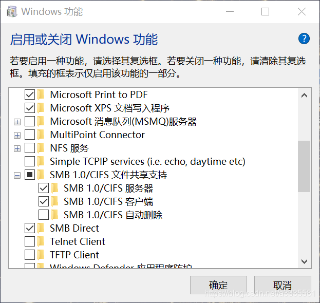 windows共享的文件无法被其他设备访问,大概是因为“SMB v1.0/CIFS 服务器”不够安全,被微软禁用了,打开就好。
