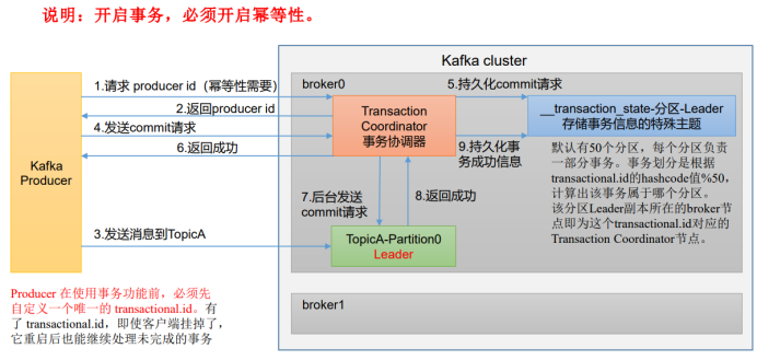 这里需要提一下:事务ID是由用户指定的,而PID是生产者创建成功后,producer向kafka申请的;并且两者为1:1关系