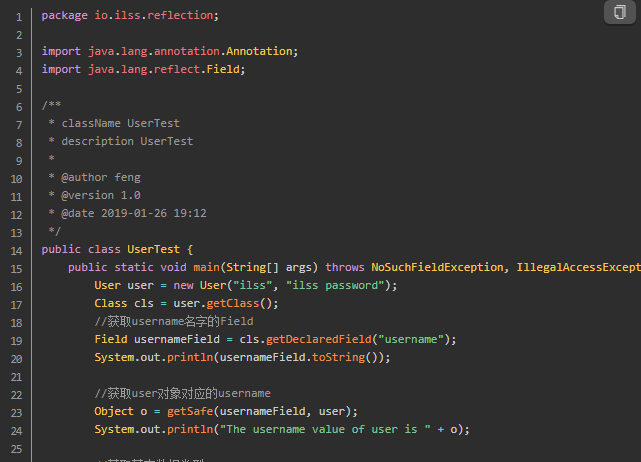 Field作为反射中对应类或对象中的域或者叫做属性的操作类
