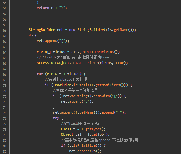 - setAccessible方法。是Field继承自AccessibleObject类,AccessibleObject是Field、Method、Constuctor类的父类。简单理解意思就是 如果类型是private修饰的,你不可以直接访问,就需要设置访问权限为true.如果是public则不需要设置。