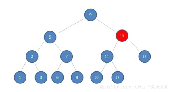 13,取代节点12,而节点12自身下移成为第一个孩子。(这个过程称为左旋)