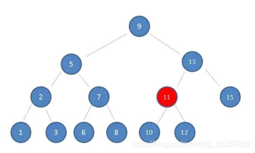3.由于10 < 13,因此查看左孩子11: