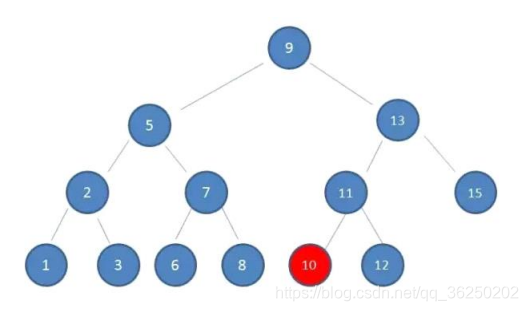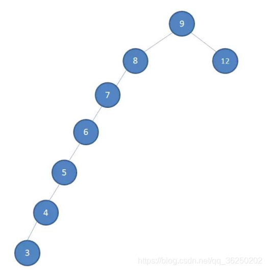 假设:初始的二叉查找树只有三个节点,根节点值为9,左孩子值为8,右孩子值为12: