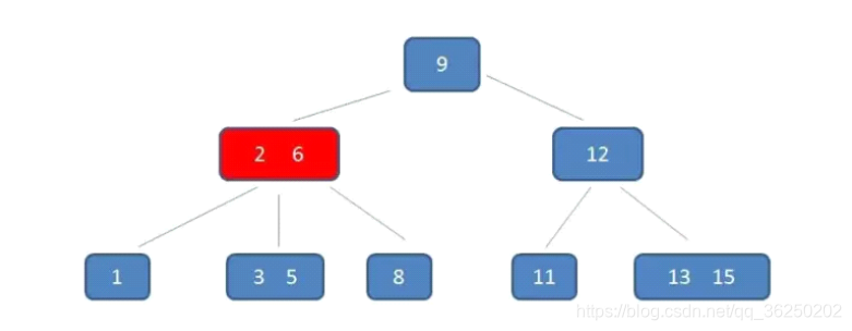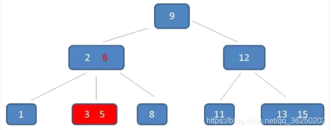 节点3,5已经是两元素节点,无法再增加。父亲节点 2, 6 也是两元素节点,也无法再增