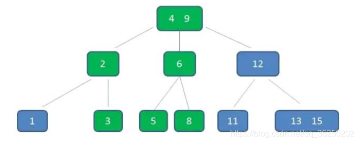 每个节点中的元素从小到大排列,节点当中k-1个元素正好是k个孩子包含的元素的值域分划。