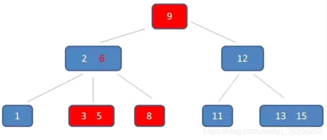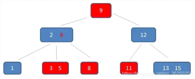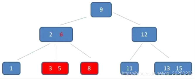 加。根节点9是单元素节点,可以升级为两元素节点。于是拆分节点3,5与节点2,6,让根节