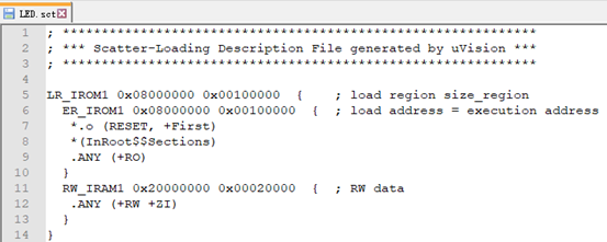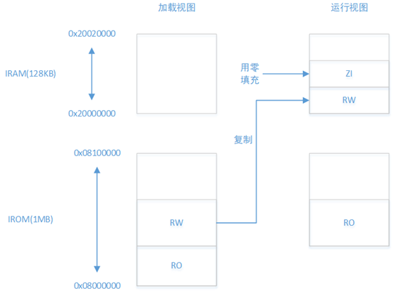 示例中的LR_IROM1是1个加载区,其中包含2个运行区(ER_IROM1和RW_IRAM1)