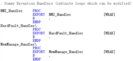 说明:启动文件中提供了WEAK定义的中断Handler,用户可自定义Handler进行覆盖