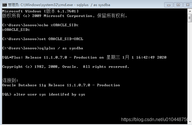 设置ORACLE_SID : set ORACLE_SID=ORCL