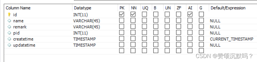 注意:根节点的pid=0,其他节点的pid跟id是有对应的父子关系的。pid是父级id,代表他的子级