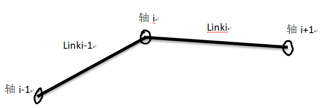 - 一个连杆有2个轴线,对于Link(i-1),其左右两端的轴为Axis(i-1)、Axis(i),两个连杆就有三个轴,如图2。