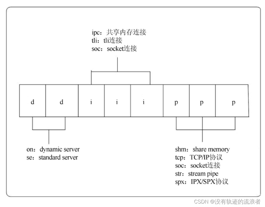 ● 如果采用TCP/IP的连接方式,第4列定义了数据库所使用的端口号,可以直接使用端口号,也可以使用/etc/services中的别名,直接使用端口号将使安装变得简单。