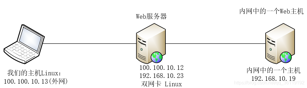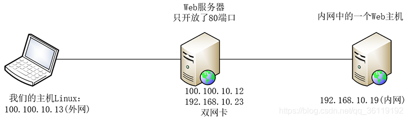 现在有这么一个环境,我们获取到了位于公网Web服务器的shell,该web服务器是Linux系统,内网中存在另外一台主机,这里假设内网存在一台Web服务器。然后,我们现在要将公网Web服务器设置为代理,访问和探测内网Web服务器的信息。