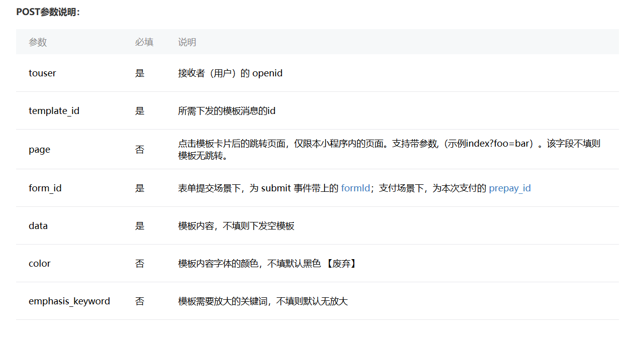老规矩先甩一下微信官方文档:https://developers.weixin.qq.com/miniprogram/dev/api/notice.html#%E5%8F%91%E9%80%81%E6%A8%A1%E6%9D%BF%E6%B6%88%E6%81%AF