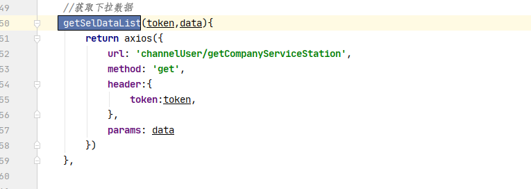 这里的 this.$api.userManagerApi .getSelDataList呢是他项目中的一部分的API里面的某一个模块,从这里获取数据然后赋值在options里面,就是上面的 this.options = res.data;