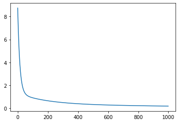 如果将输入特征和输出预测值均以向量表示,输入特征x有13个分量,y有1个分量,那么参数权重的形状(shape)是13×1。假设我们以如下任意数字赋值参数做初始化: