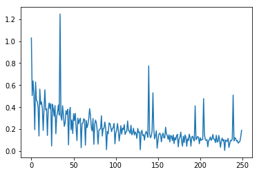 plt.show()Epoch 0 / iter 0, loss = 1.0281 Epoch 0 / iter 1, loss = 0.5048 Epoch 0 / iter 2, loss = 0.6382 Epoch 0 / iter 3, loss = 0.5168 Epoch 0 / iter 4, loss = 0.1951 Epoch 1 / iter 0, loss = 0.6281 Epoch 1 / iter 1, loss = 0.4611 Epoch 1 / iter 2, loss = 0.4520 Epoch 1 / iter 3, loss = 0.3961 Epoch 1 / iter 4, loss = 0.1381 Epoch 2 / iter 0, loss = 0.5642 Epoch 2 / iter 1, loss = 0.4250 Epoch 2 / iter 2, loss = 0.4480 Epoch 2 / iter 3, loss = 0.3881 Epoch 2 / iter 4, loss = 0.1884 Epoch 3 / iter 0, loss = 0.3921 Epoch 3 / iter 1, loss = 0.5582 Epoch 3 / iter 2, loss = 0.3759 Epoch 3 / iter 3, loss = 0.3849 Epoch 3 / iter 4, loss = 0.1425 Epoch 4 / iter 0, loss = 0.3821 Epoch 4 / iter 1, loss = 0.4382 Epoch 4 / iter 2, loss = 0.3864 Epoch 4 / iter 3, loss = 0.4314 Epoch 4 / iter 4, loss = 0.0471 Epoch 5 / iter 0, loss = 0.4264 Epoch 5 / iter 1, loss = 0.3829 Epoch 5 / iter 2, loss = 0.3179 Epoch 5 / iter 3, loss = 0.4149 Epoch 5 / iter 4, loss = 0.1581 Epoch 6 / iter 0, loss = 0.3148 Epoch 6 / iter 1, loss = 0.3532 Epoch 6 / iter 2, loss = 0.4195 Epoch 6 / iter 3, loss = 0.3272 Epoch 6 / iter 4, loss = 1.2465 Epoch 7 / iter 0, loss = 0.3166 Epoch 7 / iter 1, loss = 0.2810 Epoch 7 / iter 2, loss = 0.4126 Epoch 7 / iter 3, loss = 0.3309 Epoch 7 / iter 4, loss = 0.2255 Epoch 8 / iter 0, loss = 0.2555 Epoch 8 / iter 1, loss = 0.3678 Epoch 8 / iter 2, loss = 0.3342 Epoch 8 / iter 3, loss = 0.3806 Epoch 8 / iter 4, loss = 0.0570 Epoch 9 / iter 0, loss = 0.3532 Epoch 9 / iter 1, loss = 0.3973 Epoch 9 / iter 2, loss = 0.1945 Epoch 9 / iter 3, loss = 0.2839 Epoch 9 / iter 4, loss = 0.1604 Epoch 10 / iter 0, loss = 0.3414 Epoch 10 / iter 1, loss = 0.2774 Epoch 10 / iter 2, loss = 0.3439 Epoch 10 / iter 3, loss = 0.2103 Epoch 10 / iter 4, loss = 0.0959 Epoch 11 / iter 0, loss = 0.3004 Epoch 11 / iter 1, loss = 0.2497 Epoch 11 / iter 2, loss = 0.2827 Epoch 11 / iter 3, loss = 0.2987 Epoch 11 / iter 4, loss = 0.0316 Epoch 12 / iter 0, loss = 0.2509 Epoch 12 / iter 1, loss = 0.2535 Epoch 12 / iter 2, loss = 0.2944 Epoch 12 / iter 3, loss = 0.2889 Epoch 12 / iter 4, loss = 0.0547 Epoch 13 / iter 0, loss = 0.2792 Epoch 13 / iter 1, loss = 0.2137 Epoch 13 / iter 2, loss = 0.2427 Epoch 13 / iter 3, loss = 0.2986 Epoch 13 / iter 4, loss = 0.3861 Epoch 14 / iter 0, loss = 0.3261 Epoch 14 / iter 1, loss = 0.2123 Epoch 14 / iter 2, loss = 0.1837 Epoch 14 / iter 3, loss = 0.2968 Epoch 14 / iter 4, loss = 0.0620 Epoch 15 / iter 0, loss = 0.2402 Epoch 15 / iter 1, loss = 0.2823 Epoch 15 / iter 2, loss = 0.2574 Epoch 15 / iter 3, loss = 0.1833 Epoch 15 / iter 4, loss = 0.0637 Epoch 16 / iter 0, loss = 0.1889 Epoch 16 / iter 1, loss = 0.1998 Epoch 16 / iter 2, loss = 0.2031 Epoch 16 / iter 3, loss = 0.3219 Epoch 16 / iter 4, loss = 0.1373 Epoch 17 / iter 0, loss = 0.2042 Epoch 17 / iter 1, loss = 0.2070 Epoch 17 / iter 2, loss = 0.2651 Epoch 17 / iter 3, loss = 0.2137 Epoch 17 / iter 4, loss = 0.0138 Epoch 18 / iter 0, loss = 0.1794 Epoch 18 / iter 1, loss = 0.1575 Epoch 18 / iter 2, loss = 0.2554 Epoch 18 / iter 3, loss = 0.2531 Epoch 18 / iter 4, loss = 0.2192 Epoch 19 / iter 0, loss = 0.1779 Epoch 19 / iter 1, loss = 0.2072 Epoch 19 / iter 2, loss = 0.2140 Epoch 19 / iter 3, loss = 0.2513 Epoch 19 / iter 4, loss = 0.0673 Epoch 20 / iter 0, loss = 0.1634 Epoch 20 / iter 1, loss = 0.1887 Epoch 20 / iter 2, loss = 0.2515 Epoch 20 / iter 3, loss = 0.1924 Epoch 20 / iter 4, loss = 0.0926 Epoch 21 / iter 0, loss = 0.1583 Epoch 21 / iter 1, loss = 0.2319 Epoch 21 / iter 2, loss = 0.1550 Epoch 21 / iter 3, loss = 0.2092 Epoch 21 / iter 4, loss = 0.1959 Epoch 22 / iter 0, loss = 0.2414 Epoch 22 / iter 1, loss = 0.1522 Epoch 22 / iter 2, loss = 0.1719 Epoch 22 / iter 3, loss = 0.1829 Epoch 22 / iter 4, loss = 0.2748 Epoch 23 / iter 0, loss = 0.1861 Epoch 23 / iter 1, loss = 0.1830 Epoch 23 / iter 2, loss = 0.1606 Epoch 23 / iter 3, loss = 0.2351 Epoch 23 / iter 4, loss = 0.1479 Epoch 24 / iter 0, loss = 0.1678 Epoch 24 / iter 1, loss = 0.2080 Epoch 24 / iter 2, loss = 0.1471 Epoch 24 / iter 3, loss = 0.1747 Epoch 24 / iter 4, loss = 0.1607 Epoch 25 / iter 0, loss = 0.1162 Epoch 25 / iter 1, loss = 0.2067 Epoch 25 / iter 2, loss = 0.1692 Epoch 25 / iter 3, loss = 0.1757 Epoch 25 / iter 4, loss = 0.0125 Epoch 26 / iter 0, loss = 0.1707 Epoch 26 / iter 1, loss = 0.1898 Epoch 26 / iter 2, loss = 0.1409 Epoch 26 / iter 3, loss = 0.1501 Epoch 26 / iter 4, loss = 0.1002 Epoch 27 / iter 0, loss = 0.1590 Epoch 27 / iter 1, loss = 0.1801 Epoch 27 / iter 2, loss = 0.1578 Epoch 27 / iter 3, loss = 0.1257 Epoch 27 / iter 4, loss = 0.7750 Epoch 28 / iter 0, loss = 0.1573 Epoch 28 / iter 1, loss = 0.1224 Epoch 28 / iter 2, loss = 0.1353 Epoch 28 / iter 3, loss = 0.1862 Epoch 28 / iter 4, loss = 0.5305 Epoch 29 / iter 0, loss = 0.1981 Epoch 29 / iter 1, loss = 0.1114 Epoch 29 / iter 2, loss = 0.1414 Epoch 29 / iter 3, loss = 0.1856 Epoch 29 / iter 4, loss = 0.0268 Epoch 30 / iter 0, loss = 0.0984 Epoch 30 / iter 1, loss = 0.1528 Epoch 30 / iter 2, loss = 0.1637 Epoch 30 / iter 3, loss = 0.1532 Epoch 30 / iter 4, loss = 0.0846 Epoch 31 / iter 0, loss = 0.1433 Epoch 31 / iter 1, loss = 0.1643 Epoch 31 / iter 2, loss = 0.1202 Epoch 31 / iter 3, loss = 0.1215 Epoch 31 / iter 4, loss = 0.2182 Epoch 32 / iter 0, loss = 0.1567 Epoch 32 / iter 1, loss = 0.1420 Epoch 32 / iter 2, loss = 0.1073 Epoch 32 / iter 3, loss = 0.1496 Epoch 32 / iter 4, loss = 0.0846 Epoch 33 / iter 0, loss = 0.1420 Epoch 33 / iter 1, loss = 0.1369 Epoch 33 / iter 2, loss = 0.0962 Epoch 33 / iter 3, loss = 0.1480 Epoch 33 / iter 4, loss = 0.0687 Epoch 34 / iter 0, loss = 0.1234 Epoch 34 / iter 1, loss = 0.1028 Epoch 34 / iter 2, loss = 0.1407 Epoch 34 / iter 3, loss = 0.1528 Epoch 34 / iter 4, loss = 0.0390 Epoch 35 / iter 0, loss = 0.1113 Epoch 35 / iter 1, loss = 0.1289 Epoch 35 / iter 2, loss = 0.1733 Epoch 35 / iter 3, loss = 0.0892 Epoch 35 / iter 4, loss = 0.0456 Epoch 36 / iter 0, loss = 0.1358 Epoch 36 / iter 1, loss = 0.0782 Epoch 36 / iter 2, loss = 0.1475 E