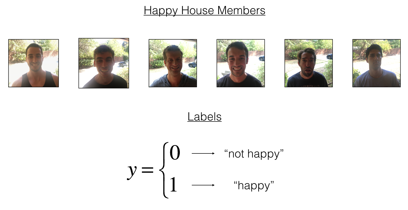 你收集了你的朋友和你自己的照片,被前门的摄像头拍了下来。数据集已经标记好了