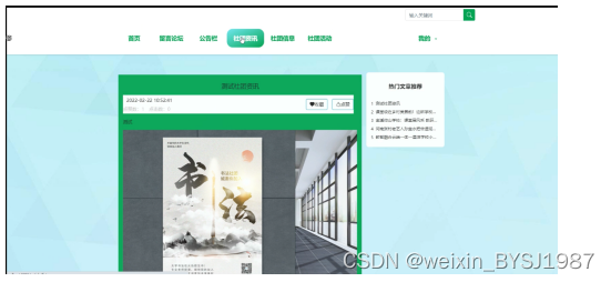 (5)社团资讯:用户进行社团资讯的阅览,查看管理员发布的社团资讯信息。