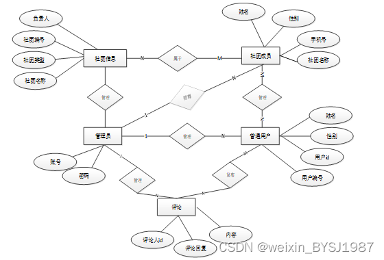 下面是整个大学生社团管理中主要的数据库表总E-R实体关系图。
