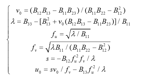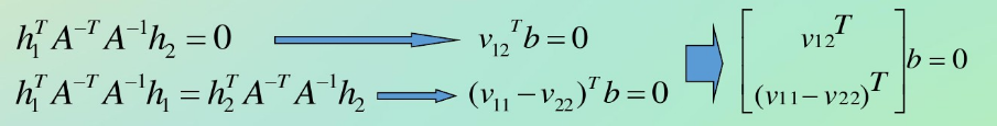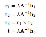 由于角点在标定板上的坐标已知,且角点的像素坐标已知,可以很容易的解出公式(3)的方程。