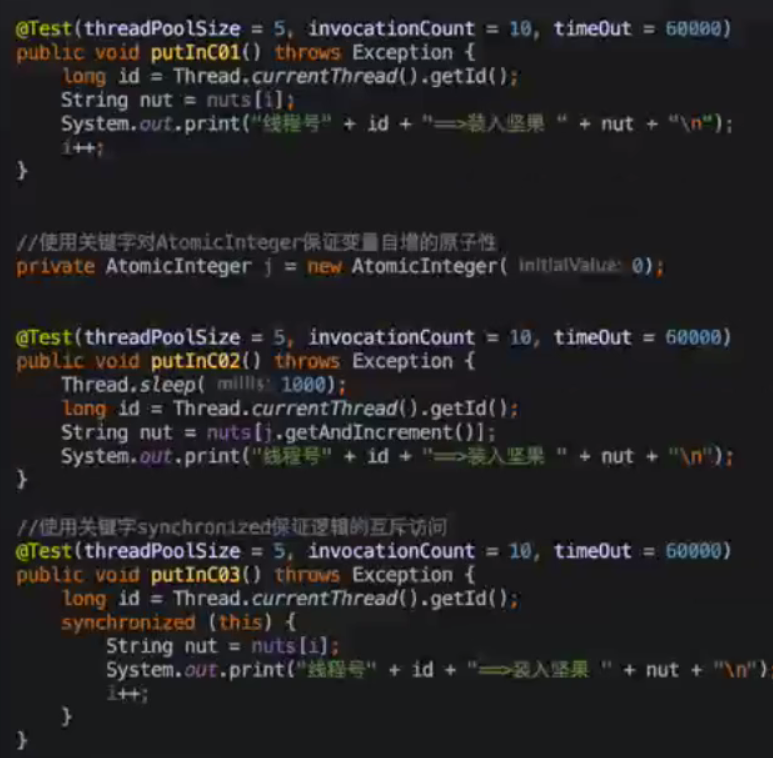 2.java.util.concurrent.atomic:提供一列类,包括:AtomicBoolean,AtomicInteger,AtomicLong类,使用这些类来声明变量或资源时可以保证对其操作时具有原子性,以此达到线程安全的效果.