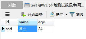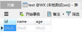 }test表只有三个字段:id,name,age
