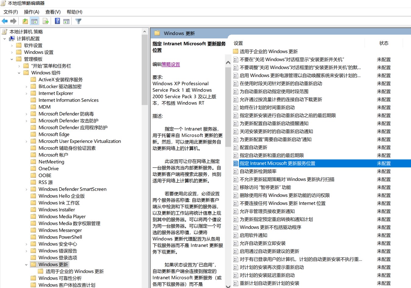 具体操作:win+R输入“gpedit.msc”打开组策略,在“计算机配置--管理模板--windows组件--Windows更新”里找到“指定Intranet microsoft 更新服务位置”,双击打开,启用,随便输一个网址,比如http://www.bilibili.com,3个框都填上,点确定。最后重启电脑,就好啦。