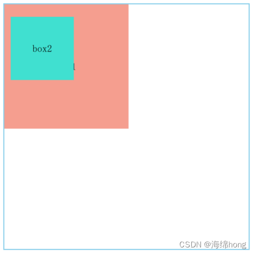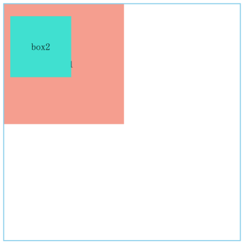 上述absolute定位的示例中,给box1、box2添加背景后可以清晰看见,box2覆盖box1