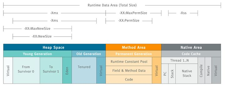 先看一张图,这张图能很清晰的说明JVM内存结构的布局和相应的控制参数: