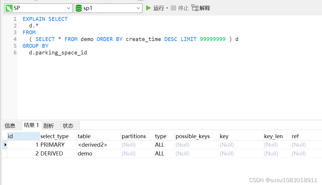 d.parking_space_id执行出来的结果却不是我们想要的数据: